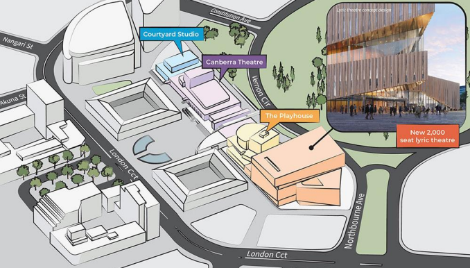 “The revitalisation of the Canberra Theatre will create a performing arts centre of national and international significance. The Canberra Theatre Centre Redevelopment Project includes a very exciting state of the art 2000 seat Lyric theatre, refurbishment of The Playhouse and The Canberra Theatre as well as expanding the Studio Theatre for flexible use by local artists for intimate shows.”