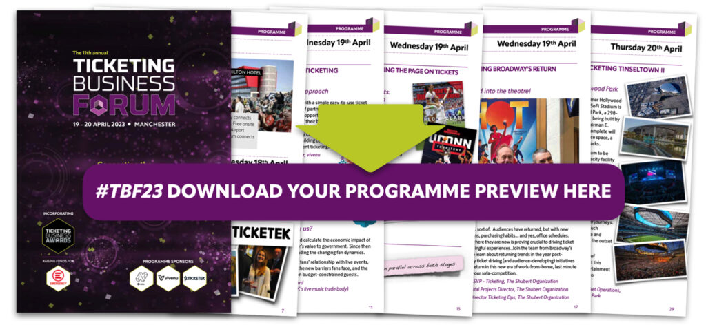 We are seriously excited to share with you some of the huge names and big organisations already confirmed for our 10th birthday edition of the world’s no.1 entertainment biz meeting – TheTicketingBusiness Forum (#TBF22) – just five weeks away on 7-8 July in Manchester.